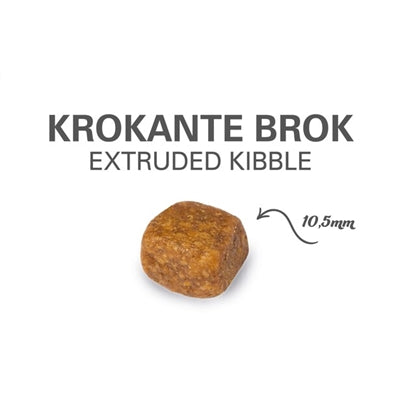 Zusammensetzung: Getrocknetes Geflügel, Mais, tierische Fette (Geflügel, Rind), Maiskleber, Reis, Eipulver, pflanzliche Fasern, Rübenschnitzel, Zellulose, Hydrolysat aus Hühnerleber, pflanzliches Öl, Hydrolysat aus Hefe (Quelle für Manno-Oligo-Saccharide), Lachsöl (0.5%), L-Carnitin, Lecithin, Fructo-Oligo-Saccharide (FOS), Glucosamin und Chondroitin (750 mg/kg)